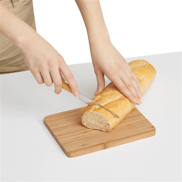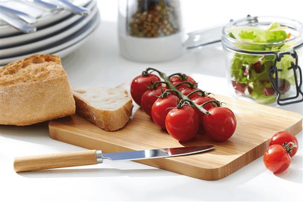 Deska do krojenia MINI BAMBOO. Bambusowa deska do krojenia, nóż ze stali nierdzewnej z uchwytem z bambusa, papierowa nakładka z miejscem na wsunięcie noża. Materiał: Bambus/Stal nierdzewna Kolor: brązowy Tagi: Deski do krojenia,noże kuchenne,noże/zestawy,artykuły gospodarstwa domowego,przybory kuchenne,deski do krojenia,deski drewniane