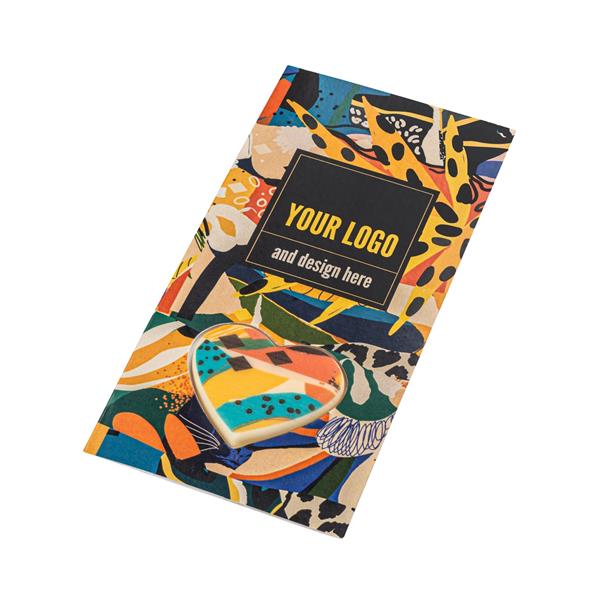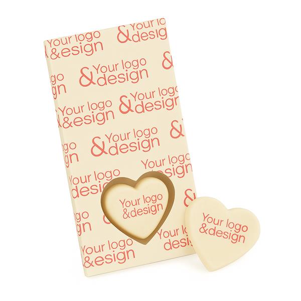 Biała czekoladka w kształcie serduszka z personalizacją bezpośrednio na czekoladzie nie tylko ucieszy odbiorcę, ale przede wszystkim zapewni Ci dodatkową powierzchnię reklamową. Zadbaliśmy o to, by była ona jak największa, dlatego możesz personalizować zarówno czekoladkę, jak i całe opakowanie – zaprojektowaliśmy je tak, aby zapewnić maksymalną powierzchnię reklamową zadruku przy minimalnym wykorzystaniu budżetu.