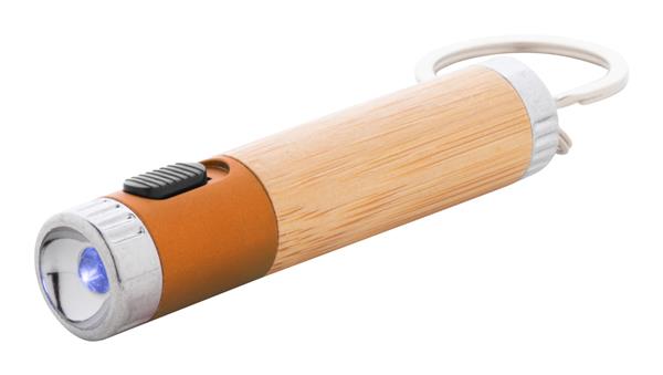 Mini latarka z bambusa i tworzywa ABS pochodzącego z recyklingu, z 1 diodą LED i metalowym brelokiem. Z baterią guzikową.