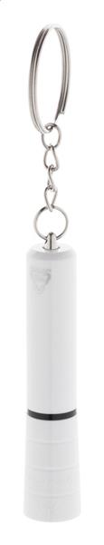 Mini latarka z 1 diodą LED z recyklingowanego plastiku ABS, z metalicznym wykończeniem i metalowym brelokiem. Z baterią guzikową. Description: Mini latarka z 1 diodą LED z recyklingowanego plastiku ABS, z metalicznym wykończeniem i metalowym brelokiem. Z baterią guzikową. Primary Color: biały Material 2: Metal Rozmiar: o11×75 mm Material 1: ABS z recyklingu