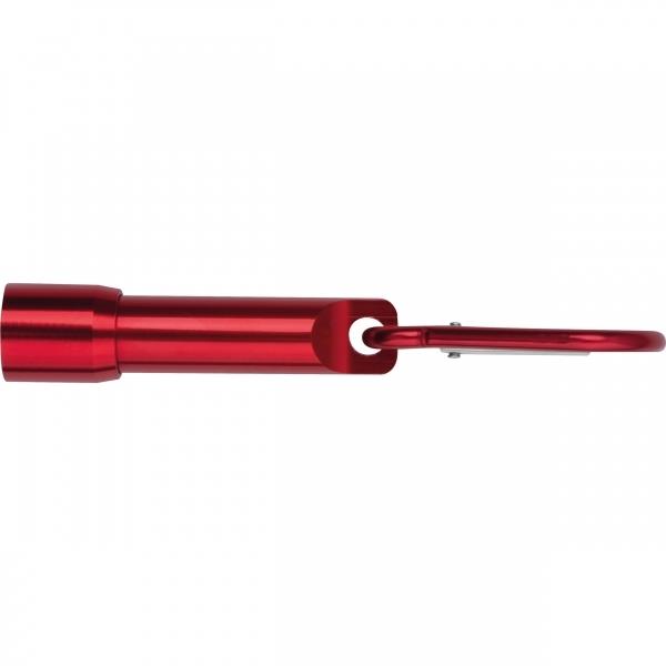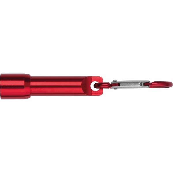 Mini latarka z karabińczykiem wykonana z recyklingowego aluminium. W zestawie 4 baterie guzikowe.