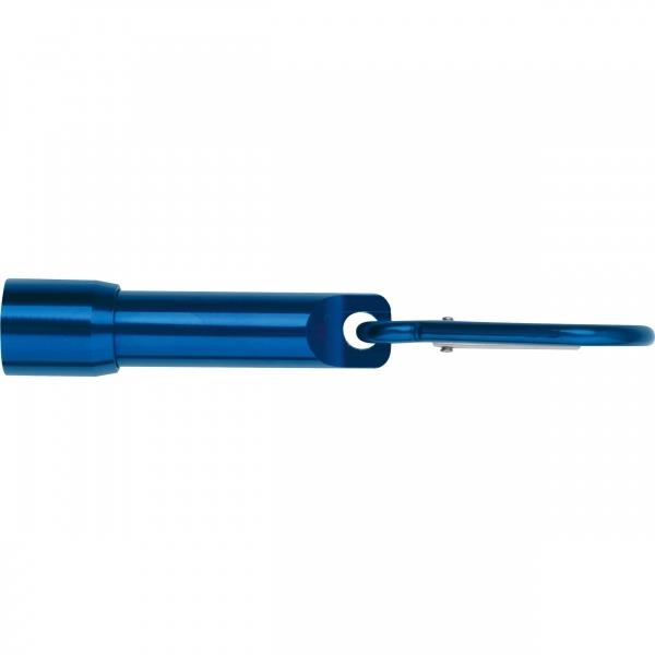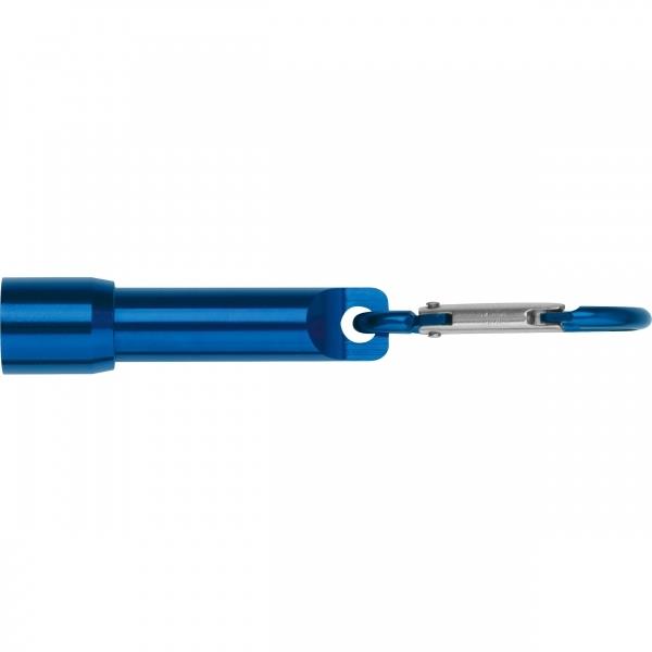 Mini latarka z karabińczykiem wykonana z recyklingowego aluminium. W zestawie 4 baterie guzikowe.
