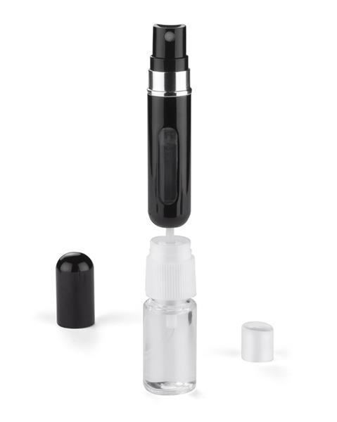 Mini perfumetka to gadżet który sprawdzi się idealnie w podróży jak i na co dzień. W prosty i szybki sposób możemy napełnić buteleczkę ulubionym perfumem lub płynem do dezynfekcji. Wystarczy dół buteleczki przyłożyć do atomizera wybranego płynu i delikatnym ruchem poprzez naciśnięcia napełnić perfumetkę. Pojemność butelki 5ml.