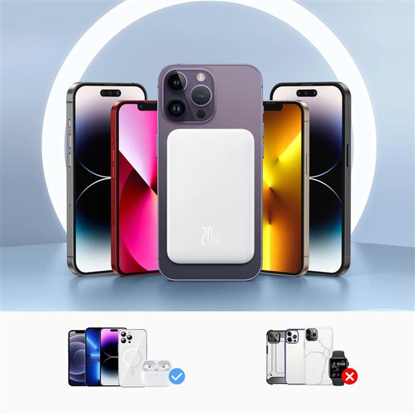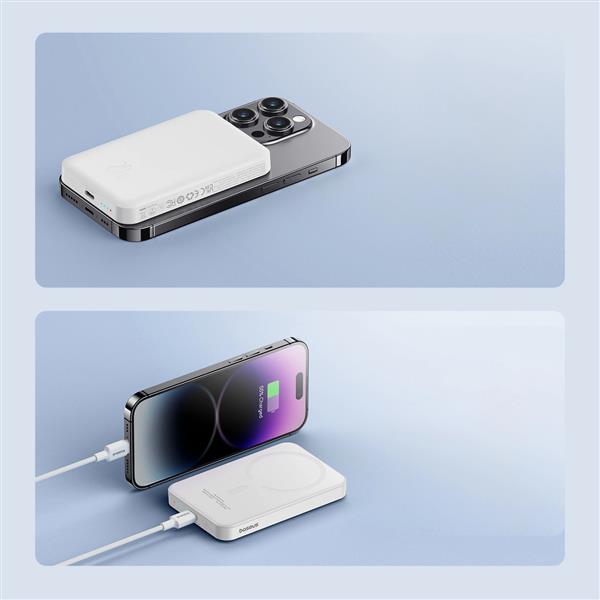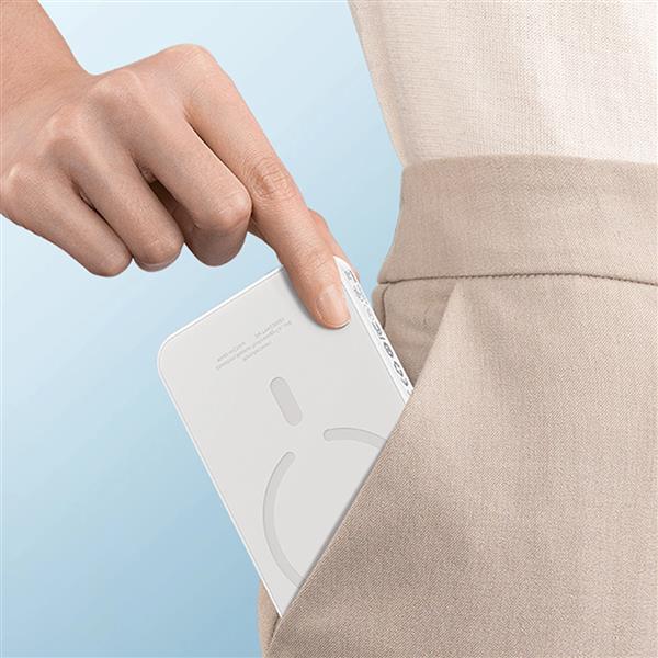 Baseus Magnetic Mini to potężna bateria zamknięta w minimalistycznej obudowie. Jego kompaktowy rozmiar sprawia, że z łatwością zmieścisz go w kieszeni, zawsze gotowy do działania, gdy potrzebujesz dodatkowej energii.