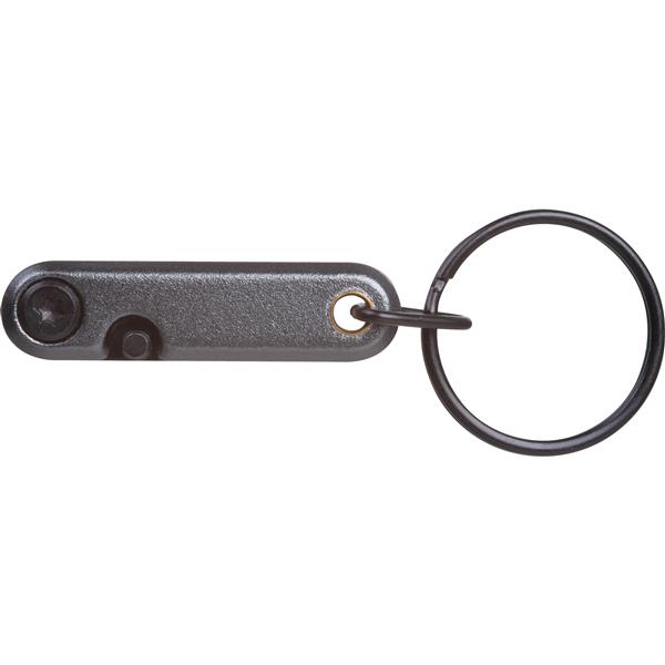 Miniaturowy scyzoryk ze stali nierdzewnej wyposażony w solidny brelok do kluczy.
