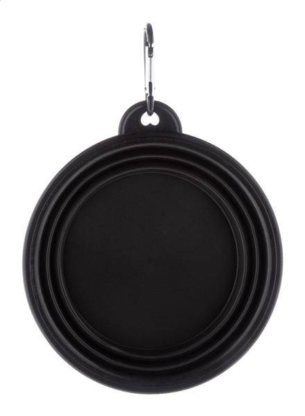 Składana miska dla psa z materiału TPR z karabińczykiem w dopasowanym kolorze, 450 ml. Description: Składana miska dla psa z materiału TPR z karabińczykiem w dopasowanym kolorze, 450 ml. Primary Color: czarny Material 1: Plastik Rozmiar: o129×52 mm