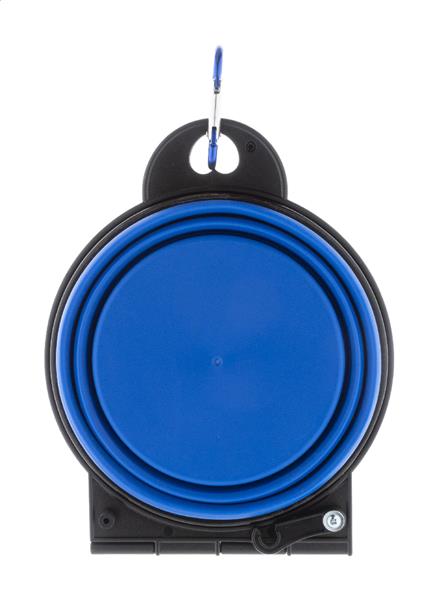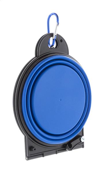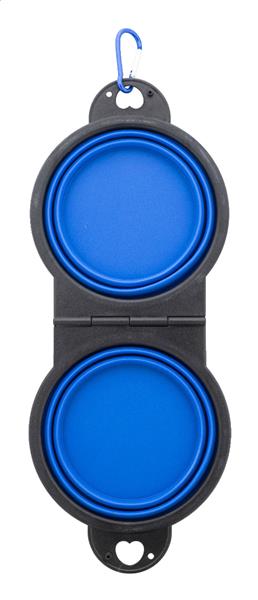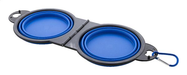 Składana miska dla zwierząt wykonana z wytrzymałego tworzywa TPE z dwiema przegrodami o pojemności 450 ml i dopasowanym kolorystycznie aluminiowym karabińczykiem.