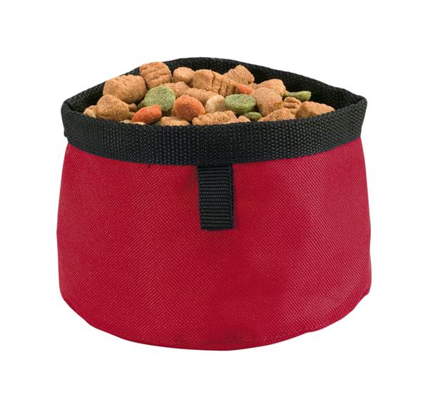 Description: Przenośna, składana miska dla psa. Primary Color: czerwony Material 1: Poliester Material 2: Nylon Rozmiar: o165×100 mm