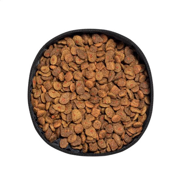 Składana miska dla psa z laminowanego papieru z recyklingu i poliestru RPET.