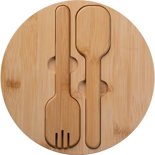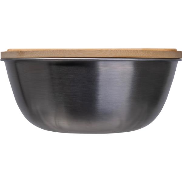 Miska na sałatę o pojemności 2 litrów, wykonana ze stali nierdzewnej z bambusową pokrywką i sztućcami.
