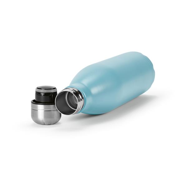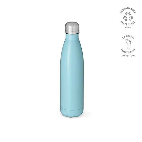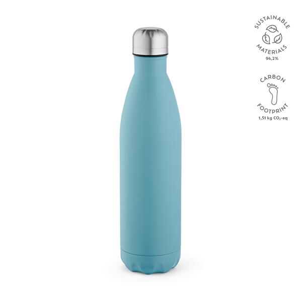 Pozostań orzeźwiony dzięki naszej butelce z recyklingowanej stali nierdzewnej o pojemności 810 ml (770 ml netto) z matowym korpusem. Wygodę zapewnia możliwość mycia w zmywarce i szczelność, a także podwójne ścianki.