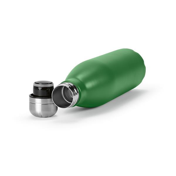 Pozostań orzeźwiony dzięki naszej butelce z recyklingowanej stali nierdzewnej o pojemności 810 ml (770 ml netto) z matowym korpusem. Wygodę zapewnia możliwość mycia w zmywarce i szczelność, a także podwójne ścianki.