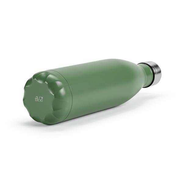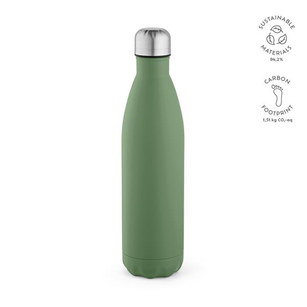 Pozostań orzeźwiony dzięki naszej butelce z recyklingowanej stali nierdzewnej o pojemności 810 ml (770 ml netto) z matowym korpusem. Wygodę zapewnia możliwość mycia w zmywarce i szczelność, a także podwójne ścianki.