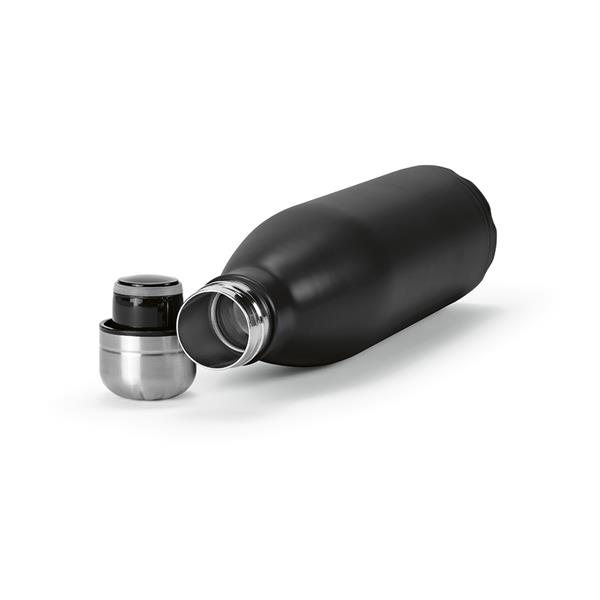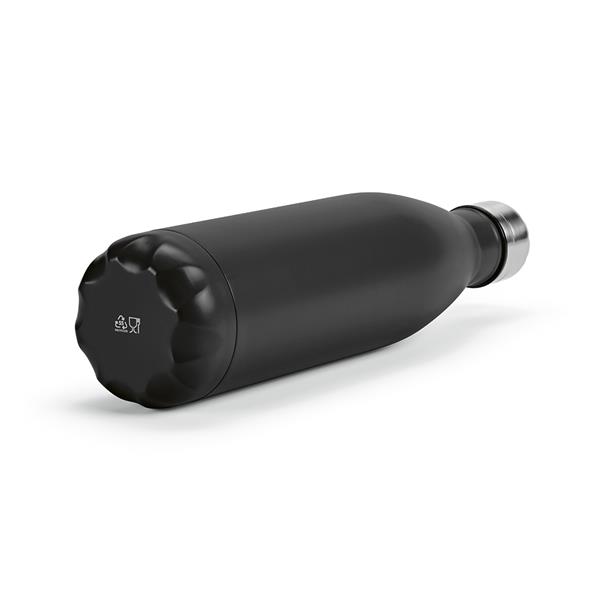 Pozostań orzeźwiony dzięki naszej butelce z recyklingowanej stali nierdzewnej o pojemności 810 ml (770 ml netto) z matowym korpusem. Wygodę zapewnia możliwość mycia w zmywarce i szczelność, a także podwójne ścianki.