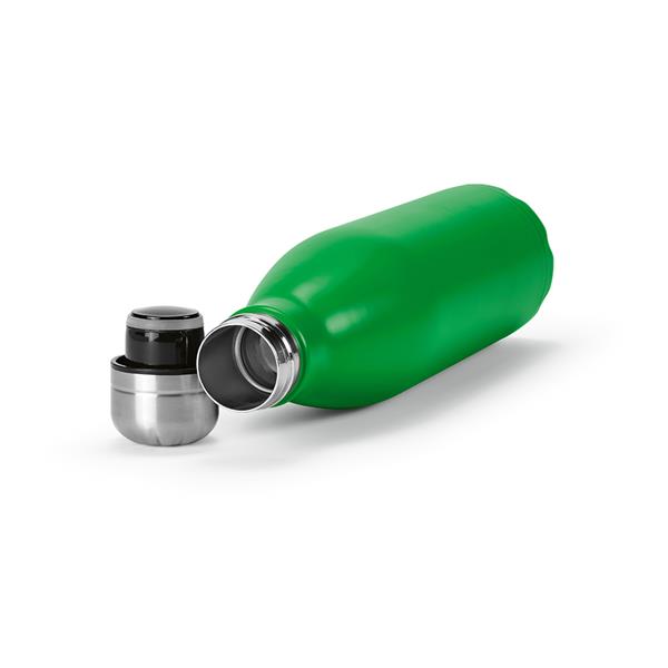 Pozostań orzeźwiony dzięki naszej butelce z recyklingowanej stali nierdzewnej o pojemności 810 ml (770 ml netto) z matowym korpusem. Wygodę zapewnia możliwość mycia w zmywarce i szczelność, a także podwójne ścianki.