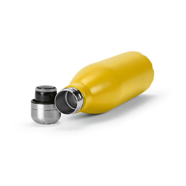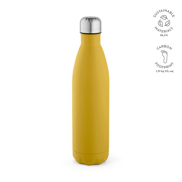 Pozostań orzeźwiony dzięki naszej butelce z recyklingowanej stali nierdzewnej o pojemności 810 ml (770 ml netto) z matowym korpusem. Wygodę zapewnia możliwość mycia w zmywarce i szczelność, a także podwójne ścianki.