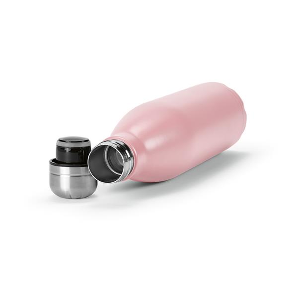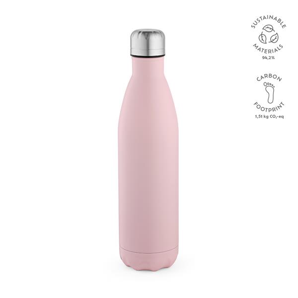 Pozostań orzeźwiony dzięki naszej butelce z recyklingowanej stali nierdzewnej o pojemności 810 ml (770 ml netto) z matowym korpusem. Wygodę zapewnia możliwość mycia w zmywarce i szczelność, a także podwójne ścianki.