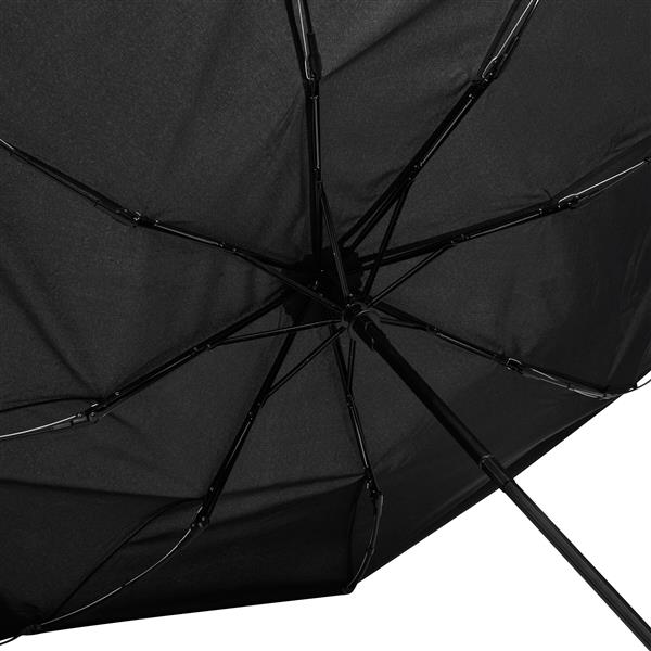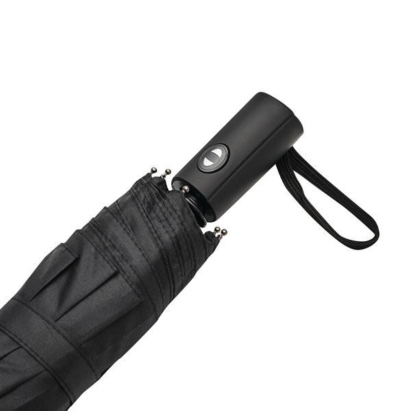 Automatyczny, wiatroodporny, kieszonkowy parasol MISTRAL. Posiada trzyczęściowy, metalowy trzon ze szkieletem z włókna szklanego oraz metalowe końcówki. Dodatkowo dla wygody użytkowania wyposażony jest w uchwyt z gumową powłoką. Poszycie wykonane jest z poliestru-pongee. Parasol zapinany jest na rzep.