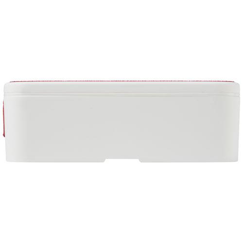 Idealne pudełko na lunch do szkoły, pracy lub wypoczynku! Pudełko na lunch MIYO oferuje pojemność 700 ml, dzięki czemu idealnie nadaje się do kanapek, sałatek i wielu innych rzeczy. Pokrywa jest utrzymywana w miejscu za pomocą opaski wykonanej z tworzywa sztucznego PET pochodzącego z recyklingu. Prosimy o kontakt, aby uzyskać informacje na temat innych kombinacji kolorów i dodatkowych akcesoriów, takich jak łyżeczko-widelec lub komora wewnętrzna. Produkt nadaje się do użycia w kuchence mikrofalowej, mycia w zmywarce, nie zawiera bisfenolu A (BPA) oraz w pełni nadaje się do recyklingu. Wyprodukowano w Wielkiej Brytanii i zapakowano w torbę nadającą się do kompostowania w domu.