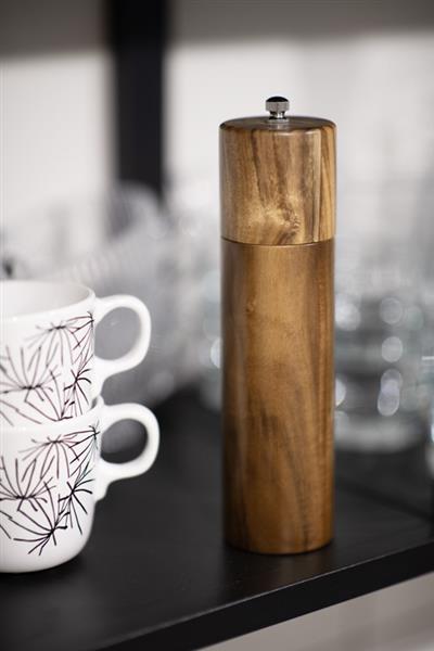 GRINO to solidny, drewniany młynek do soli lub pieprzu, który doskonale sprawdzi się zarówno w kuchni, jak i na eleganckim stole. Wykonany z wysokiej jakości drewna, zapewnia wygodne użytkowanie i precyzyjne mielenie przypraw. Klasyczna forma i naturalne wykończenie nadają mu ponadczasowy charakter, który łatwo dopasować do różnych stylów wnętrz. GRINO to także świetna propozycja na upominek — pojedynczo lub w zestawie dwóch młynków zapakowanych w pudełko prezentowe z motywem soli i pieprzu. Produkt dostępny z możliwością znakowania, co pozwala stworzyć praktyczny i stylowy gadżet firmowy.