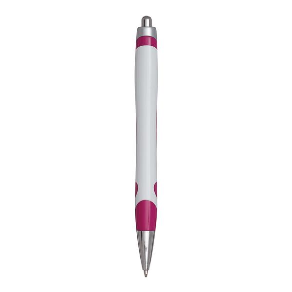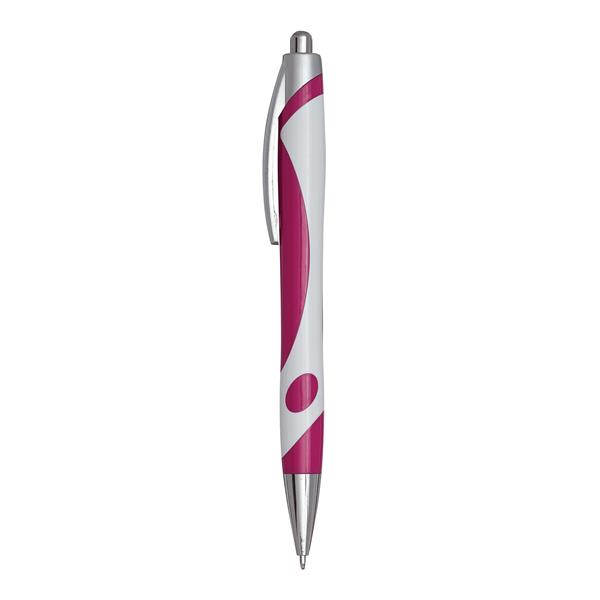 Długopis MODERN, lakierowany na srebrny mat plastikowy klip, mechanizm przyciskowy, czarny tusz. Materiał: Plastik Kolor: biały, magenta Tagi: Długopisy,długopisy,akcesoria biurowe,przybory do pisania