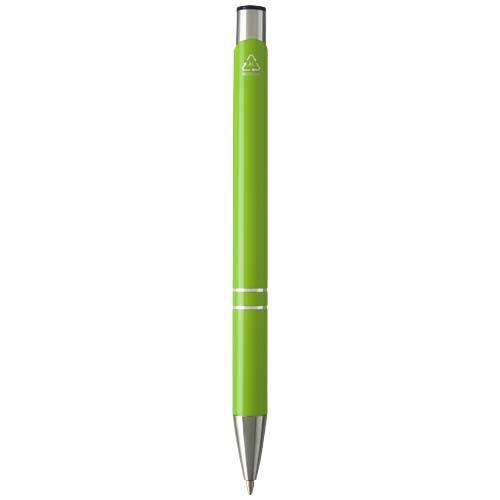 Długopis wykonany z aluminium z recyklingu z lakierowanym wykończeniem, połyskiem i wyrazistymi chromowanymi detalami. Aluminium z recyklingu ogranicza ilość odpadów na wysypiskach śmieci i pomaga chronić zasoby naturalne w celu zmniejszenia emisji gazów cieplarnianych. Kolor tuszu: Niebieski. Żywotność: 1000 metrów. Rozmiar stalówki: 1,00 mm.