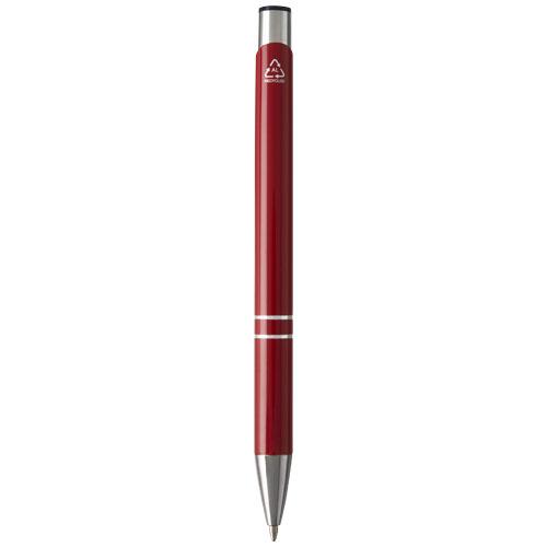 Długopis wykonany z aluminium z recyklingu z lakierowanym wykończeniem, połyskiem i wyrazistymi chromowanymi detalami. Aluminium z recyklingu wymaga mniej energii niż produkcja aluminium z surowców, co sprawia, że jest bardziej ekologiczne. Ogranicza również ilość odpadów na wysypiskach śmieci i pomaga chronić zasoby naturalne w celu zmniejszenia emisji gazów cieplarnianych. Czarny tusz. Żywotność: 600 metrów.