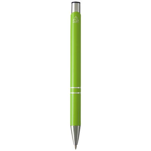 Długopis wykonany z aluminium z recyklingu z lakierowanym wykończeniem, połyskiem i wyrazistymi chromowanymi detalami. Aluminium z recyklingu wymaga mniej energii niż produkcja aluminium z surowców, co sprawia, że jest bardziej ekologiczne. Ogranicza również ilość odpadów na wysypiskach śmieci i pomaga chronić zasoby naturalne w celu zmniejszenia emisji gazów cieplarnianych. Czarny tusz. Żywotność: 600 metrów.
