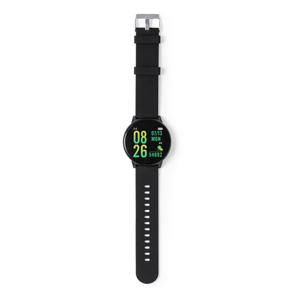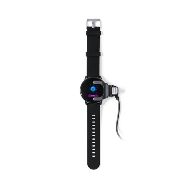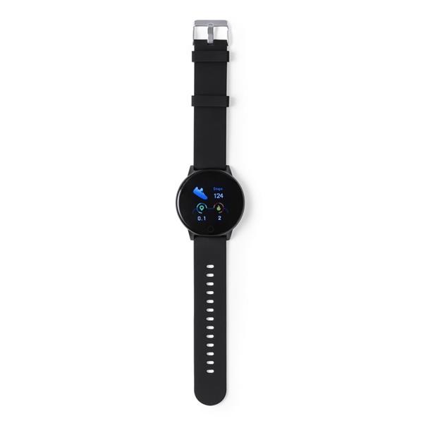 Monitor aktywności, bezprzewodowy zegarek wielofunkcyjny BT 5.2, dotykowy wyświetlacz TFT 1,3″, bateria 180 mAh, ładowany przez USB, kabel w komplecie, funkcje: monitor pracy serca, monitor ciśnienia krwi, monitor natlenowania krwi, licznik spalonych kalorii, funkcja połączeń BT, monitor snu, powiadomienia o połączeniach i wiadomościach, powiadomienia z aplikacji, wyzwalacz migawki, alarm, wibracje, czas i data, zabezpieczenie przed zgubieniem, odtwarzacz muzyki, pogoda