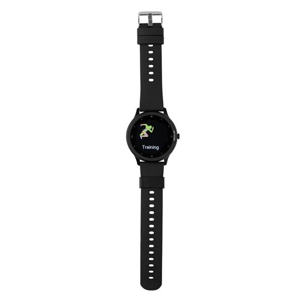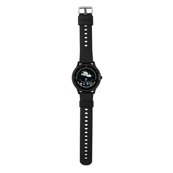 Monitor aktywności Fit Watch 1,28″, BT 5.0, wykonany ze stopu cynku, pasek wykonany z TPE z recyklingu, posiada certyfikat RCS (Recycled Claim Standard), całkowita zawartość materiału z recyklingu obliczona w oparciu o wagę całkowitą przedmiotu: 23%, funkcje multi sport (24 rodzajów), odbierania połączeń, śledzenia tętna, mierzenia ciśnienia krwi, pomiar czasu snu, kalendarz, powiadomienia z aplikacji, wodoodporność i pyłoszczelność IPX 67, kompatybilny z Androidem 4.4 oraz IOS 8.0 lub nowszymi, czas czuwania do 25 dni, czas pracy do 7 dni, ładowarka klipsowa w zestawie, w pudełku kraftowym, nie zawiera PVC