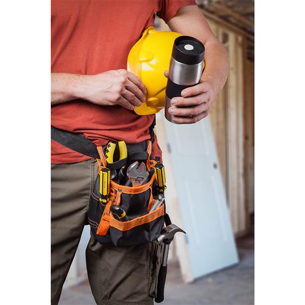 Monterski pas na narzędzia. Posiada dużą przegrodę główną, przednią kieszeń, 8 zaczepów i 2 małe kieszenie na narzędzia. Odpinany i regulowany pas o długości do 1,2 m. Wzmocniony 7 stalowymi nitami.