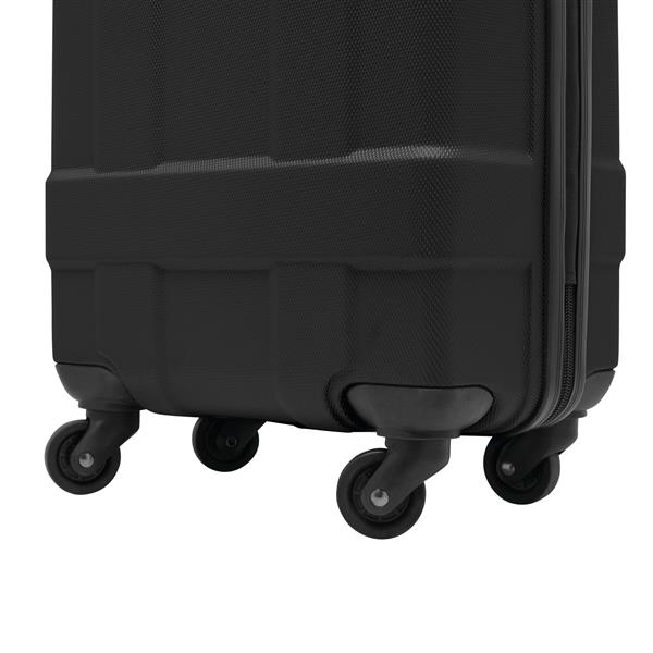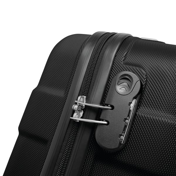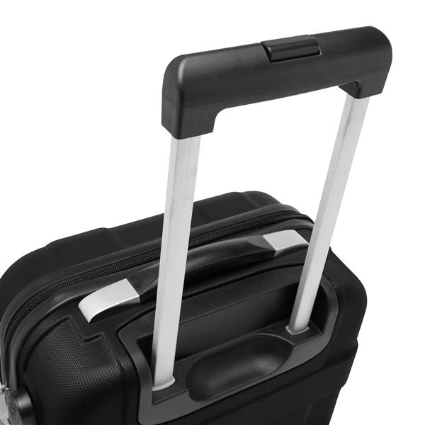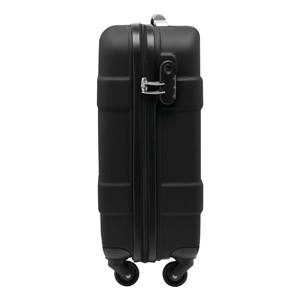 Walizka podróżna MONZA z możliwością pakowania z obu stron. Z przegrodą na zamek i pasami do unieruchamiania zawartości. Wysuwany uchwyt, rączka do przenoszenia, zamek szyfrowy, 4 lekko jeżdżące koła, zdejmowana metalowa płytka. Rozmiar odpowiedni dla tanich linii lotniczych. Materiał: ABS Kolor: czarny Tagi: Wózki,walizki,bagaż