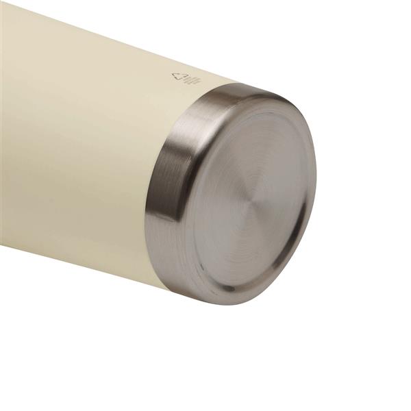 Butelka termiczna MUG2GO z podwójną izolacją. Wnętrze wykonane jest ze stali nierdzewnej z recyklingu, zewnętrzna część ze stali nierdzewnej. Ma bezpieczną plastikową zakrętkę w dopasowanym kolorze z podwójną funkcją – wbudowanym otworem do picia oraz składanym ustnikiem. Posiada silikonową uszczelkę i uchwyt do przenoszenia z rPET. Ma pojemność ok. 500 ml, utrzymuje ciepło przez ok. 8 godzin, a zimno do 12. Zapakowana jest w pudełko.