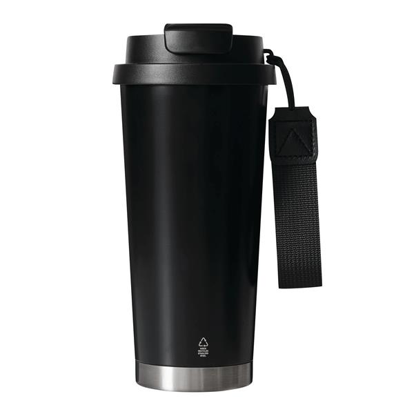 Butelka termiczna MUG2GO z podwójną izolacją. Wnętrze wykonane jest ze stali nierdzewnej z recyklingu, zewnętrzna część ze stali nierdzewnej. Ma bezpieczną plastikową zakrętkę w dopasowanym kolorze z podwójną funkcją – wbudowanym otworem do picia oraz składanym ustnikiem. Posiada silikonową uszczelkę i uchwyt do przenoszenia z rPET. Ma pojemność ok. 500 ml, utrzymuje ciepło przez ok. 8 godzin, a zimno do 12. Zapakowana jest w pudełko.