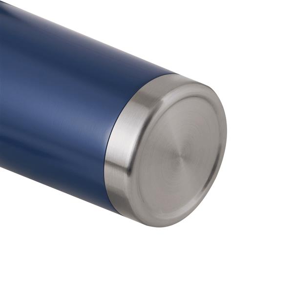 Butelka termiczna MUG2GO z podwójną izolacją. Wnętrze wykonane jest ze stali nierdzewnej z recyklingu, zewnętrzna część ze stali nierdzewnej. Ma bezpieczną plastikową zakrętkę w dopasowanym kolorze z podwójną funkcją – wbudowanym otworem do picia oraz składanym ustnikiem. Posiada silikonową uszczelkę i uchwyt do przenoszenia z rPET. Ma pojemność ok. 500 ml, utrzymuje ciepło przez ok. 8 godzin, a zimno do 12. Zapakowana jest w pudełko.