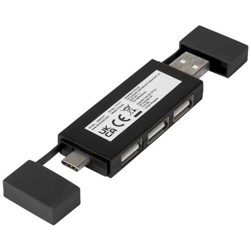 Mulan podwójny koncentrator USB 2.0Koncentrator USB 2.0 z 3 portami zintegrowanymi z kablem USB-A do USB-C.Długość: 9 cm Szerokość: 2 cm Wysokość: 0,9 cm Materiał: Plastik ABS Kolor: Czarny
