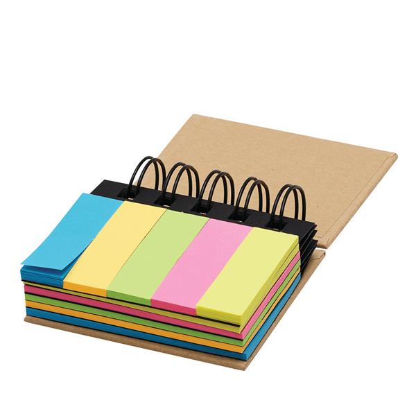Mini segregator MULTI MEMO z wielokolorowymi samoprzylepnymi notesikami, wykonany z materiałów z recyklingu.
