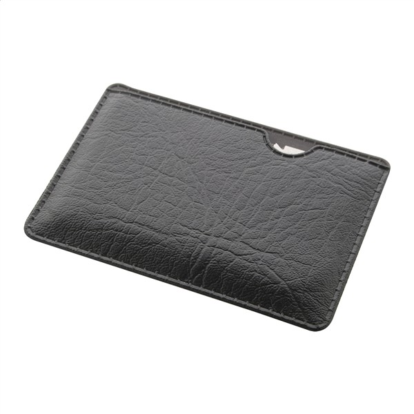Narzędzie wielofunkcyjne w kształcie karty kredytowej ze stali nierdzewnej z 11 funkcjami, w etui ze skóry PU.