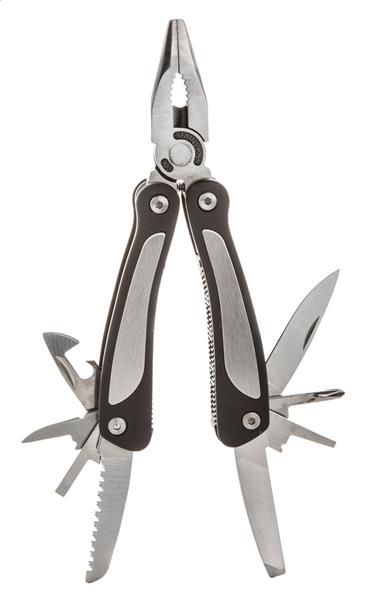 Wielofunkcyjne narzędzie, 9 funkcji: szczypce, pilnik do paznokci, 3 śrubokręty, 2 rozmiary noży, otwieracz do puszek.