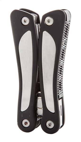 Wielofunkcyjne narzędzie, 9 funkcji: szczypce, pilnik do paznokci, 3 śrubokręty, 2 rozmiary noży, otwieracz do puszek. Description: Wielofunkcyjne narzędzie, 9 funkcji: szczypce, pilnik do paznokci, 3 śrubokręty, 2 rozmiary noży, otwieracz do puszek. Primary Color: czarny Material 1: Stal nierdzewna Rozmiar: 70×141×40 mm
