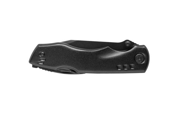 Wielofunkcyjne narzędzie w czarnym kolorze z 10 funkcjami: szczypce (3 rodzaje), nóż (gładki i ząbkowany), otwieracz do puszek, otwieracz do butelek, śrubokręt płaski, śrubokręt wielofunkcyjny oraz blokada bezpieczeństwa.