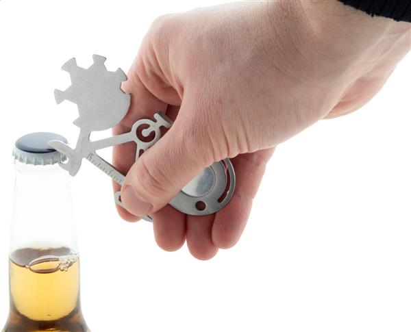 Narzędzie wielofunkcyjne ze stali nierdzewnej w kształcie roweru z 11 funkcjami.