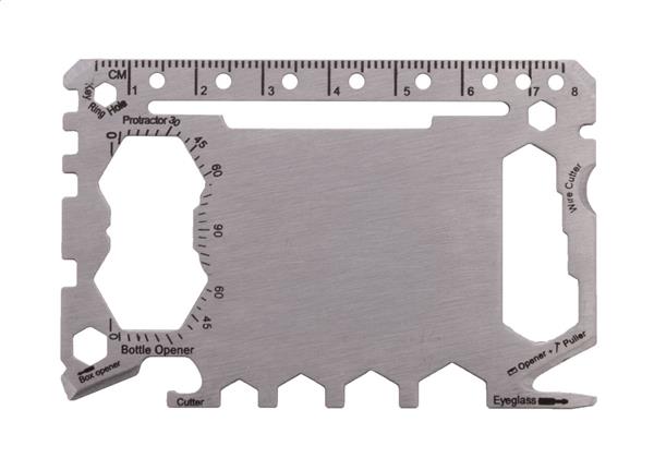 Narzędzie wielofunkcyjne w kształcie karty kredytowej ze stali nierdzewnej z 20 funkcjami, w etui ze skóry PU. Description: Narzędzie wielofunkcyjne w kształcie karty kredytowej ze stali nierdzewnej z 20 funkcjami, w etui ze skóry PU. Primary Color: srebrny Material 1: Stal nierdzewna Material 2: Skóra PU Rozmiar: 91×61 mm