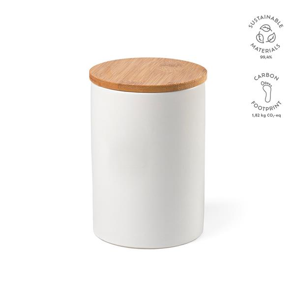 Nasz ceramiczny pojemnik na żywność o pojemności 980 ml (900 ml netto) zwieńczony jest bambusowym wdziękiem. Silikonowa uszczelka utrzymuje świeżość w ryzach. To strażnik Twojej kuchni, od cukru po sekrety, gotowy dodać odrobinę magii do każdego przepisu.