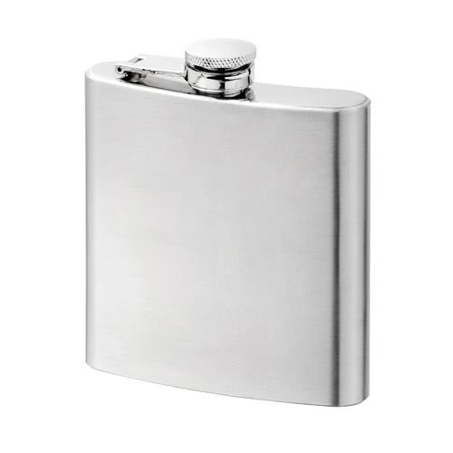 Butelka kieszonkowa ze stali nierdzewnej o pojemności do 180 mL. Dostarczany w pudełku. 100 x 110 x 25 mm