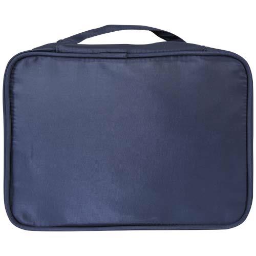 Kompaktowa kosmetyczka Muse idealnie sprawdza się w podróży, przechowując w uporządkowany sposób szczoteczki, pudry, kosmetyki pielęgnacyjne i inne niezbędne przybory. Wykonana z poliestru pochodzącego z recyklingu z certyfikatem GRS, łączy w sobie wygodę użytkowania z bardziej zrównoważonym wyborem materiału.