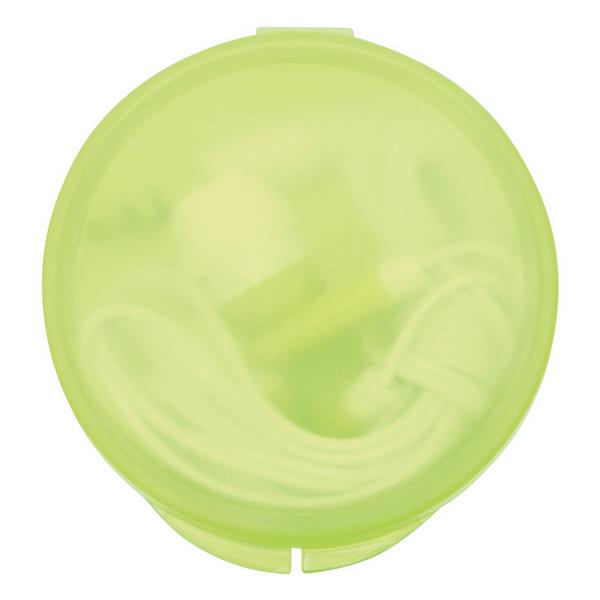 Słuchawki douszne MUSIC. Jack 3,5 mm, długość kabla ok. 117 cm, pakowane w pudełko w tym samym kolorze.