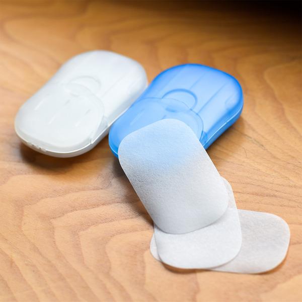 Mydlane listki w estetycznym, zamykanym etui. Higieniczny mini zestaw idealny by zawsze mieć go przy sobie w torebce, samochodzie czy podróży. Aby umyć ręce wystarczy umieścić rozpuszczalny, mydlany listek na dłoni i zmoczyć go wodą. 25szt listków w zestawie.