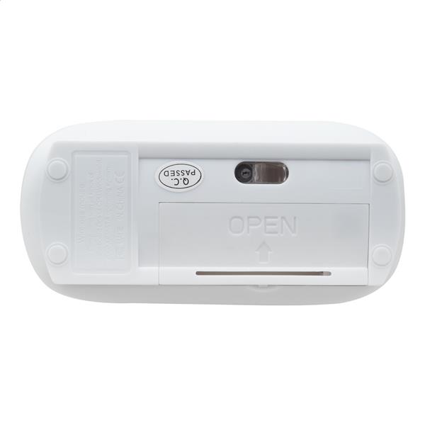 Bezprzewodowa mysz optyczna w plastikowej obudowie. Działa na 2 baterie AAA, bez baterii. To urządzenie wykorzystuje niezaszyfrowane bezprzewodowe połączenie RF; dlatego nie jest możliwe używanie wielu urządzeń w tym samym pomieszczeniu (lub w promieniu 10 metrów).