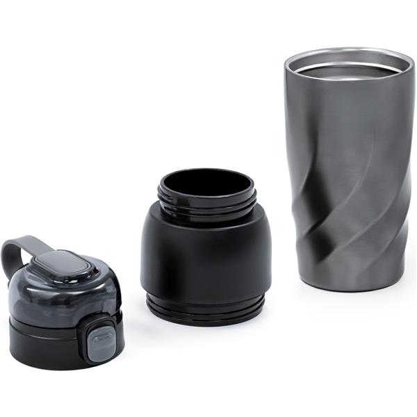Nakładka na kubek z zamknięciem na klik i uchwytem ułatwiającym noszenie, podwójne ścianki, pojemność: 250ml, produkt wykonany z PP